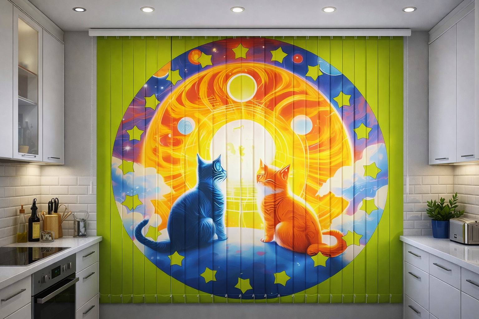 Любое изображение можно нанести как на рулонные шторы, так и на вертикальные жалюзи. Это придаст индивидуальность Вашему интерьеру