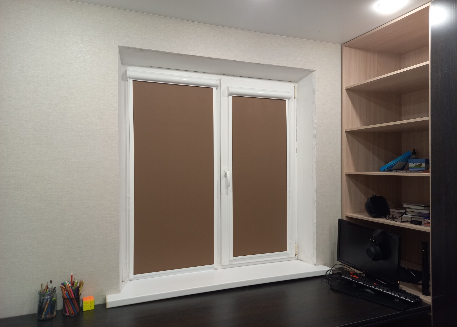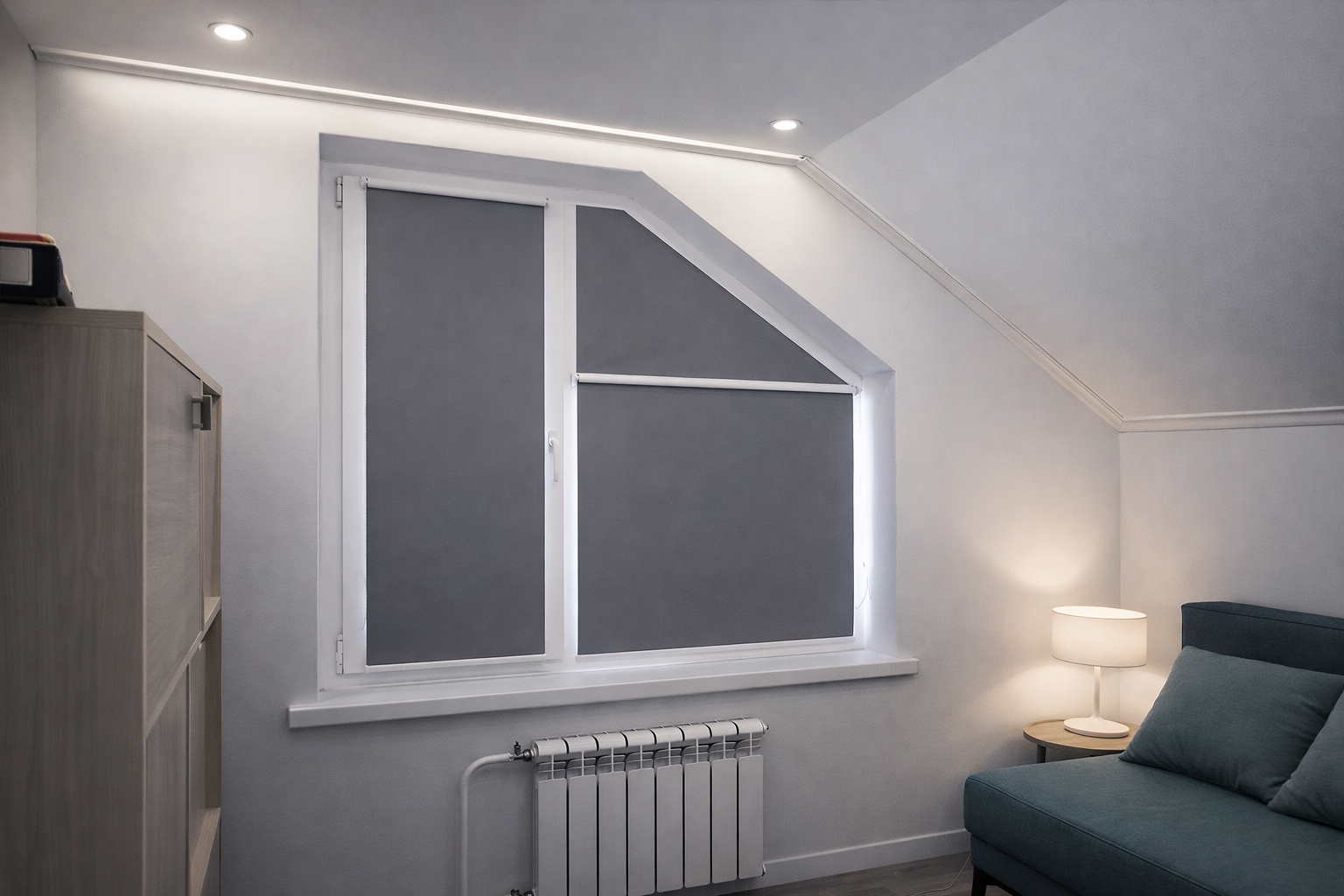 Да, рулонные шторы — одно из лучших решений для мансардных окон. Благодаря специальным конструкциям с боковыми направляющими, они плотно прилегают к стеклу, не провисают при наклоне, обеспечивают отличную солнцезащиту