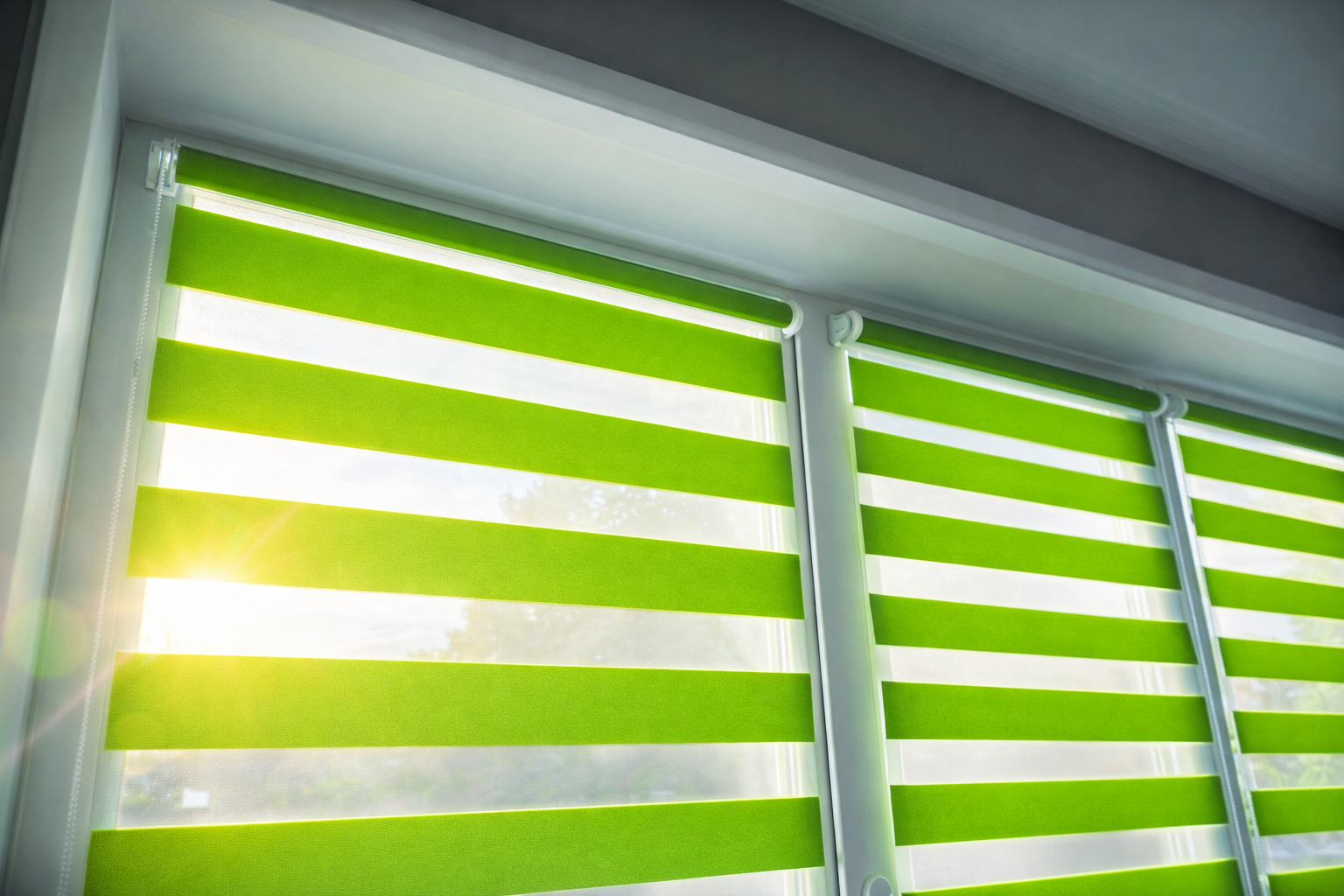 «Зебра» состоит из двух полос: прозрачной и непрозрачной, чередующихся друг с другом. Уникальный механизм позволяет регулировать световой поток за счет совмещения полос. Системы механизмов для «Зебры» бывают как универсальные, так и кассетные, поэтому устанавливать их можно как на проемы, так и на створки пластиковых окон. Минимальный размер 38х38