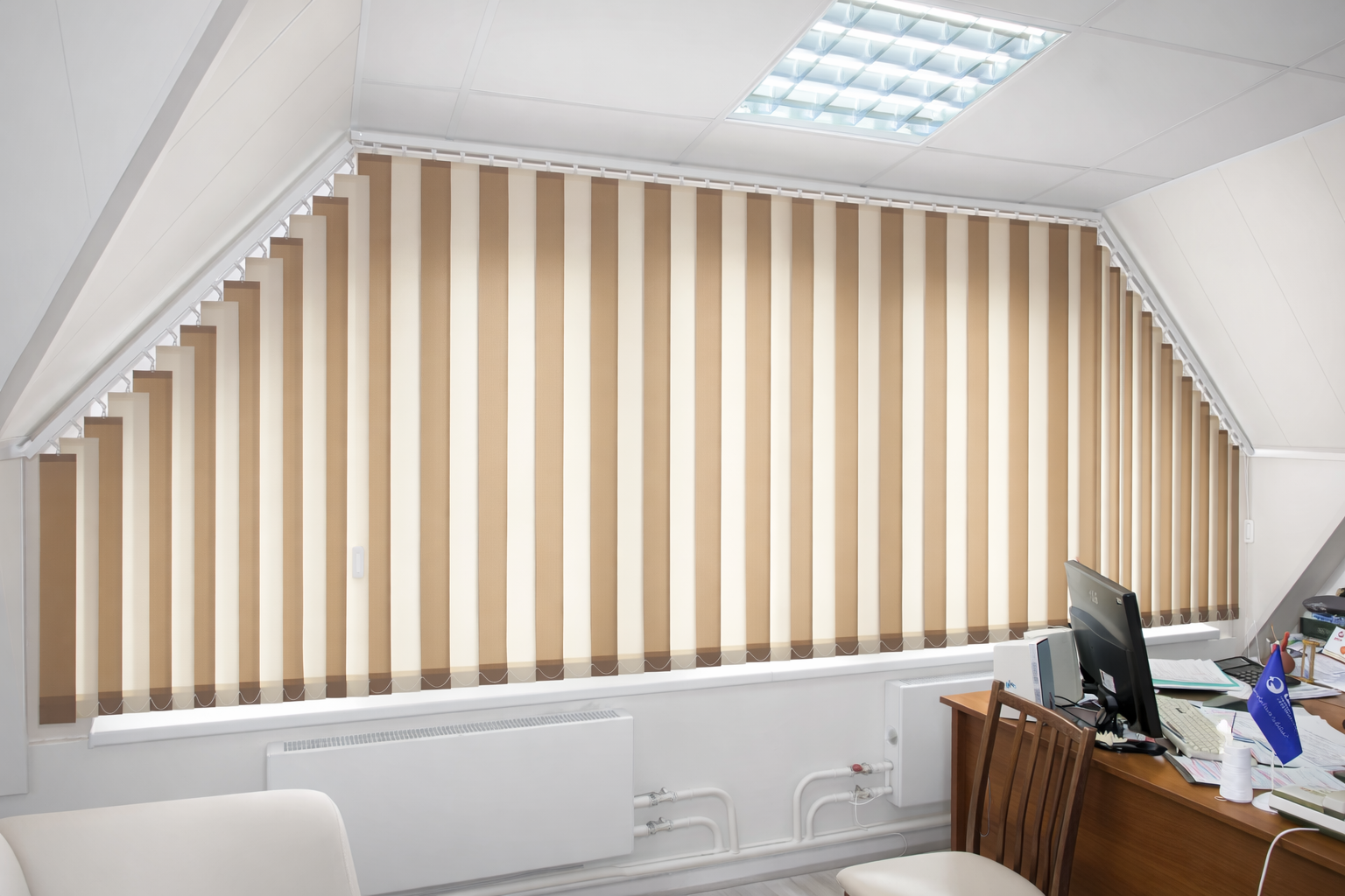 Тканевые жалюзи хорошо подходят как для офиса, так и для дома или дачи. Помимо оформления оконных проемов, вертикальные жалюзи применяются для разделения помещения на зоны, маскировки ниш и антресолей, или в качестве ширмы. Минимальный размер 30х30